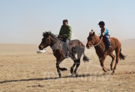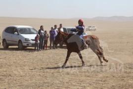 4. Төв аймгийн Батсүмбэр сумын уугуул Д.Эрдэнэбаярын халтар. Халтар морийг Мөнхбат хүү унаж айргийн дөрвөөр давхиулав.