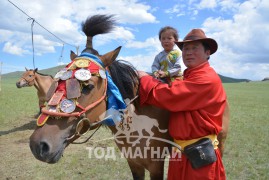 -2008 онд анх сумынхаа наадамд соёолон морь айргийн гурваар давхиулж байлаа. Аавтайгаа зөвлөж уясан л даа. Тэгээд намар нь 9 сарын 1-нд даага айрагдуулснаас хойш жил алгасалгүй морь уяж таван түрүү, арав гаруй айраг хүртэн сумын Алдарт уяач цол хүртээд байна. Энэ бол аав минь үр хүүхэд бидэндээ хурдан удмын сайн адуу бэлдэж өвлүүлэн үлдээсний буян.