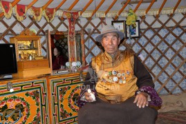 -Эцгийгээ дагаж, хоёр их насны морь уяж байсан. 1957-1958 оны үе юм уу даа. Түүнээс хойш цаг хэцүү болсон шүү дээ. Яасан бэ гэхээр манайх 12-хон адуу, 12 үхэр, 50 хонь, нэг тэмээтэй үлдэж байлаа. Тухайн үед эцэг эх минь засаг төрийн шаардлагыг биелүүлээд малаа өгөхөөс аргагүй болсон. Тэд маань айхтар албач, шаардлага хүлээн авдаг хүмүүс байсан л даа. Ер нь урьдын улс бүгд л шаардлага мундаг дагадаг, засаг төр юу л гэнэ, за л гээд дороо биелүүлдэг байлаа. Ингээд авч үлдсэн 12 адуунаас маань хурдан морь гараагүй. Харин би эрийн цээнд хүрч нэгдлийн олон адуутай болоод, 1960-аад оноос морь уяж эхэлсэн. Өөрийн чинь асуусан гурван түрүү хүртдэг наадам чинь 1987 оных. Тэр жил дөрвөн насанд айраг хүртэж байлаа.