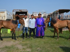 -Хоёр англи азарга байна. Нэг будённый, хоёр англи будённый гүү бий. Хурдны чиглэлийн адууны гол шалгуур нь хурдан байх явдал шүү дээ. Энэ адууг хөгжүүлэхээр чадахаараа хичээж байна.
