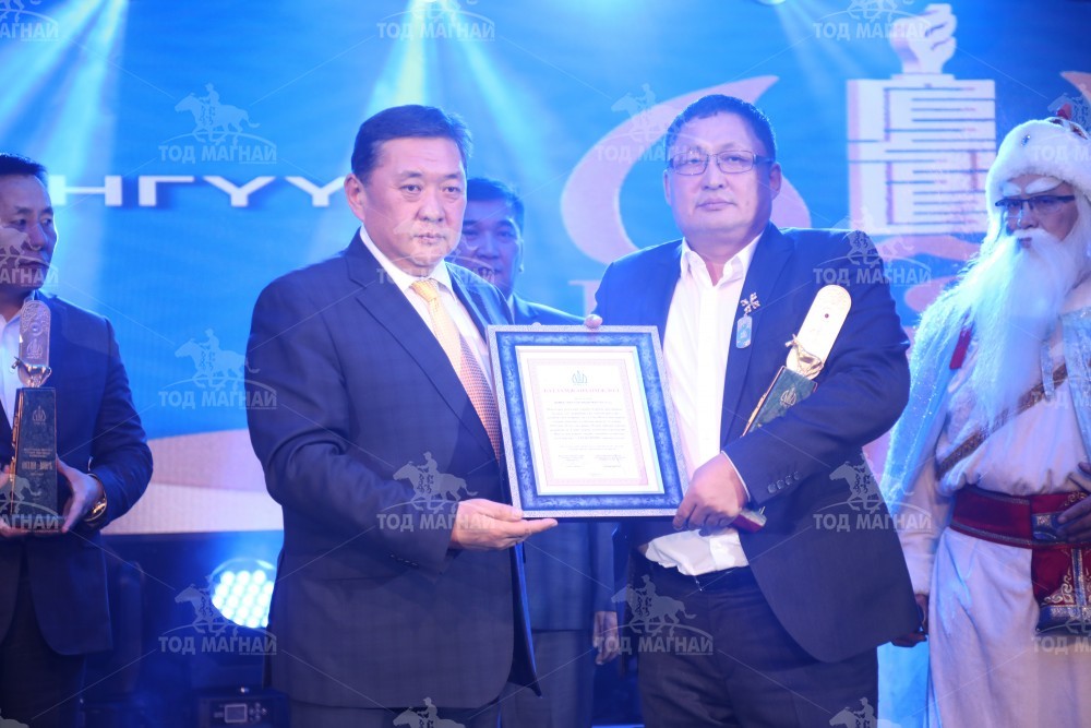 ММСУХ-ны бодлого, үйл ажиллагааны хүрээнд амжилттай ажиллаж, Монголын их өв соёл хурдан морины уралдааны түүхэнд гавьяа байгуулсан байгууллага, хурдан морины зүтгэлтэнд олгодог “АЛТАН МОРЬ” шагналын энэ жилийн эздээр Тод манлай уяач Г.Батхүү агсан, Тод манлай уяач Д.Хишигжаргал, Манлай уяач Б.Бадраа, нийслэлийн Алдарт уяач Д.Лхагвасүрэн, “Мобиком” корпорацийн захирал Тацуяа Хамада нар тодорчээ.