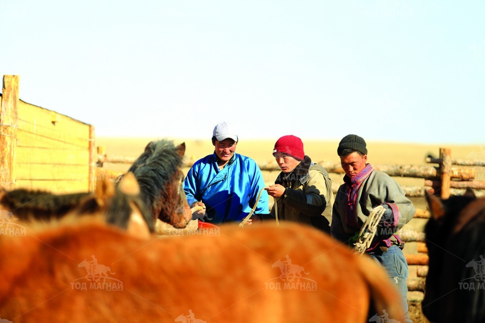 -Зургаан хоногийн дараа. Барьсан шөнөө уяж хоноод маргааш нь ажил хийгээд нөгөөдөр нь сунгасан, янзтай хурдан юм аа. Орой морьдынхоо сүүлний боолтыг авч байтал Онгоны малын эмч Анхаа найз маань 69-тэй хүрээд ирлээ. Тэгснээ “Хөгшин нь Бумбаны тахилгын даагыг байлна” гэж байна. “Өө, даагатай, даагатай” гэсэн над дээр уягдаж байсан, тэр наадамд мордохгүй даагануудыг заагаад “Энэ үү, тэр үү” гэхээр нь бороо заатал “Энэ үү дээ” гээд голонгуй байна аа. Машинд нь ороод суусан эхнэрээ танилцуулангаа нэг юм задаллаа. Өнөөхийг уулаа. “Алтан говь” гээд пиво гаргаад ирлээ, уулаа. Тэгсэн шагнал, батламжаа үзүүлээд “Манай Онгоноос түрүүлчихээсэй” гэж байна. Тэгэхээр нь “Хэний хүүгийн даага түрүүлэх нь хамаагүй. Чи байгаа л горойж хотойлгүй өгнө байгаа” гэчихээд хэсэг ярьж суусан нэлээд халж байна аа, тэгээд “Наадах дээрээ Мөнхбаясгалан гээд биччих. Би маргааш энэ бор даагыг түрүүлгэнэ” гэчихсэн (инээв).