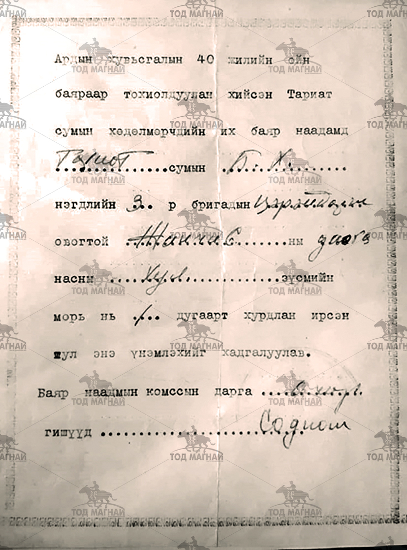 1985 онд Ардын хувьсгалын 64 жилийн ойн их баяр наадмаар аман хүзүүнд тус тус хурдалжээ.