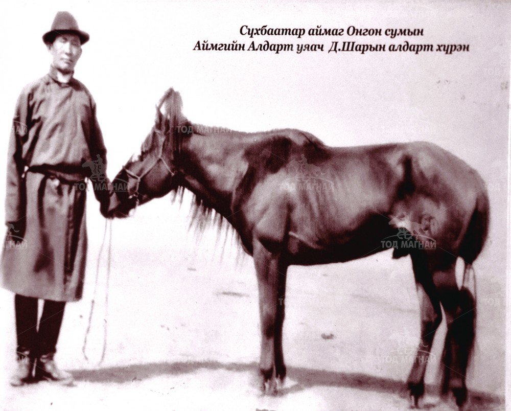 -1950-иад оны үед хурдалж байсан морь. Манай өвөө бас морь уяж байсан. Алаг нүдэн гэж нэг шаргал морь байсныг муухан санаж байна. Түүнээс өмнөхийг бол мэдэх юм алга.