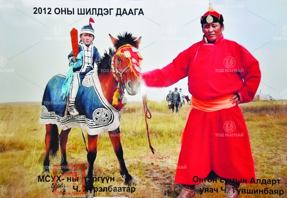 -Тийм байх аа. Уясан эзэн нь би. 2012 онд сумынхаа наадамд шүдлэн гуравт оруулсан юм. Тэгээд би Наран сум руу гурван адуу явуулсан юм аа. Хүүхэд нь хүрэлцэхгүй, нэг өдрийн зөрүүтэй байсан юм. Халиун хязаалан тавлуулаад, шүдлэн үрээ аман хүзүүдүүлж, даага түрүүлүүлсэн. 2013 онд Олимп хонгор нэртэй шүдлэнгээ түрүүлүүлсэн. Даагандаа Дарьганга суманд олимпийн аварга Түвшинбаярын босгосон суварганы нээлтэд түрүүлсэн. Тэгсэн дасгалжуулагч Насантогтох бил үү, өөрийнх нь багш хонгор дааганд маань бэлэг өгөөд “Үүнд Олимп хонгор гэж нэр өгье” гэсэн юм. Даагандаа сумын наадамд зургаагаар давхисан даа. Тойрсон сумдад болсон бага уралдаанд зургаа түрүүлсэн. Түүнээс хойш Асгатын уулын тахилгад болон Баяндэлгэрт хэд хэд түрүүлсэн юм. Тэгээд шүдлэн үрээ сумандаа түрүүлээд, 2014 онд хязаалан мөн түрүүллээ. Тэр жил Од хонгор, Олимп хонгор, шаргал гээд гурван даагатай байлаа. Од хонгор нь тойрсон сумдад найм айрагдаж, Олимп хонгор зургаа түрүүлж, шаргал нь зургаа айрагдсан.