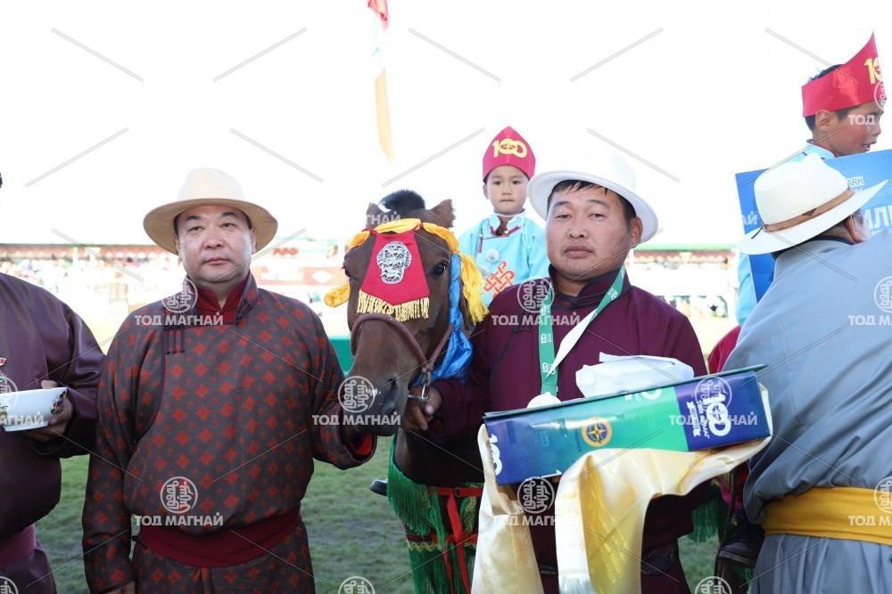 АХ-ын 102 жилийн ой, Үндэсний их баяр цэнгэл наадамд их нас, /Хулгар хээр морь айргийн дөрөвт/, соёолон, /Өвөрхангай аймгийн Арвайхээр сумын уугуул Сэнгээгийн Бямбасүрэнгийн хүрэн соёолон айргийн дөрөвт/ шүдлэн /Архангай аймгийн Өндөр-Улаан сумын уугуул Ч.Энхбатын сартай хүрэн/айрагдуулж, хэдхэн хоногийн дараа болсон Богд хан уулын аймаг байгуулагдсаны 100 жилийн ой, төвийн бүсийн уралдаанаас нэг түрүү, дөрвөн айраг хүртсэн.