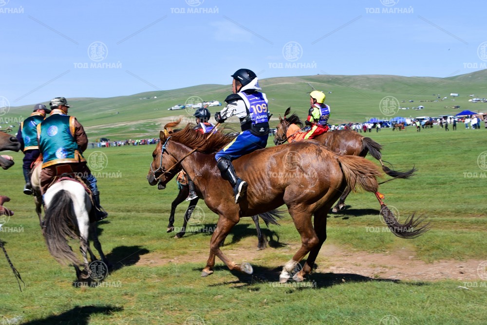 5. Хөвсгөл аймгийн Рашаант сумын уугуул А.Билигүдэйн Чандмань хээр. Эх нь Тогмидын Төрбатын улсад долоолсон хүрэн азарганы төл сартай хүрэн. Эцэг нь Тандер банч дуудлагатай Англи хээр халзан азарга. 2022 онд “Хотгойдын хурд” уралдаанд айргийн гуравт хурдалж байсан. Уяа сойлгыг аймгийн Алдарт уяач Адуучийн Нямбаатар. Уралдаанч Хөвсгөл аймгийн Рашаант сумын харьяат С.Содномдорж.