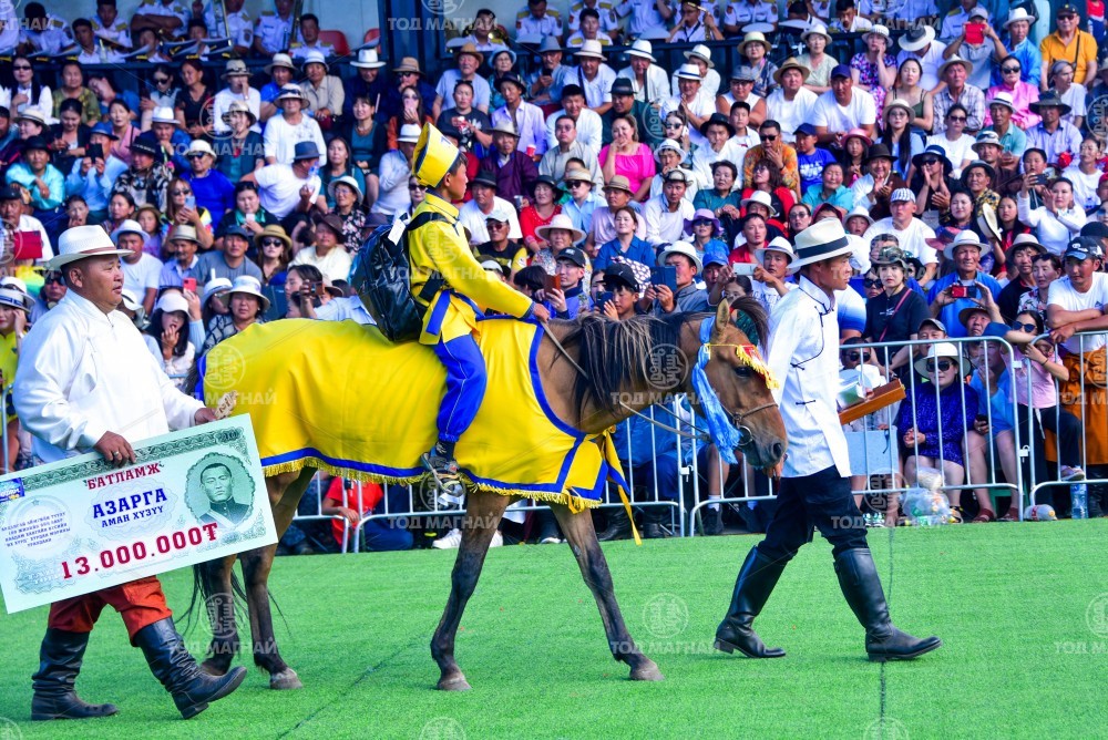 1.Увс аймгийн Зүүнговь сумын уугуул, нийслэлийн Алдарт уяач Далайн Батбаярын Түмт хээр. Эцэг нь Бонибо дуудлагатай араб хээр халзан азарга. Эх нь Тод манлай уяач Ц.Аюуш агсаны Том хээр азарганы төлийн төл сартай хүрэн гүү. Соёолондоо 2022 онд Дархан-Уул аймгийн 60 жилийн ойд аман хүзүүнд хурдалж, Увс аймгийн Өндөрхангай суманд болсон Ханхөхийн тахилгад түрүүлсэн. 2023 онд Архангай аймгийн 100 жилийн ой болоод Хантайшир уулын аймаг байгуулагдсаны 100 жилийн ойд тус тус түрүүлсэн. Уяа сойлгыг аймгийн Алдарт уяач Энхтайваны Энх-Амгалан. Уралдаанч 11 настай Энх-Амгалангийн Бүрэнтөгс.