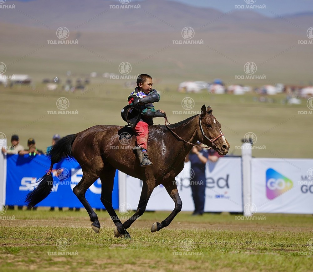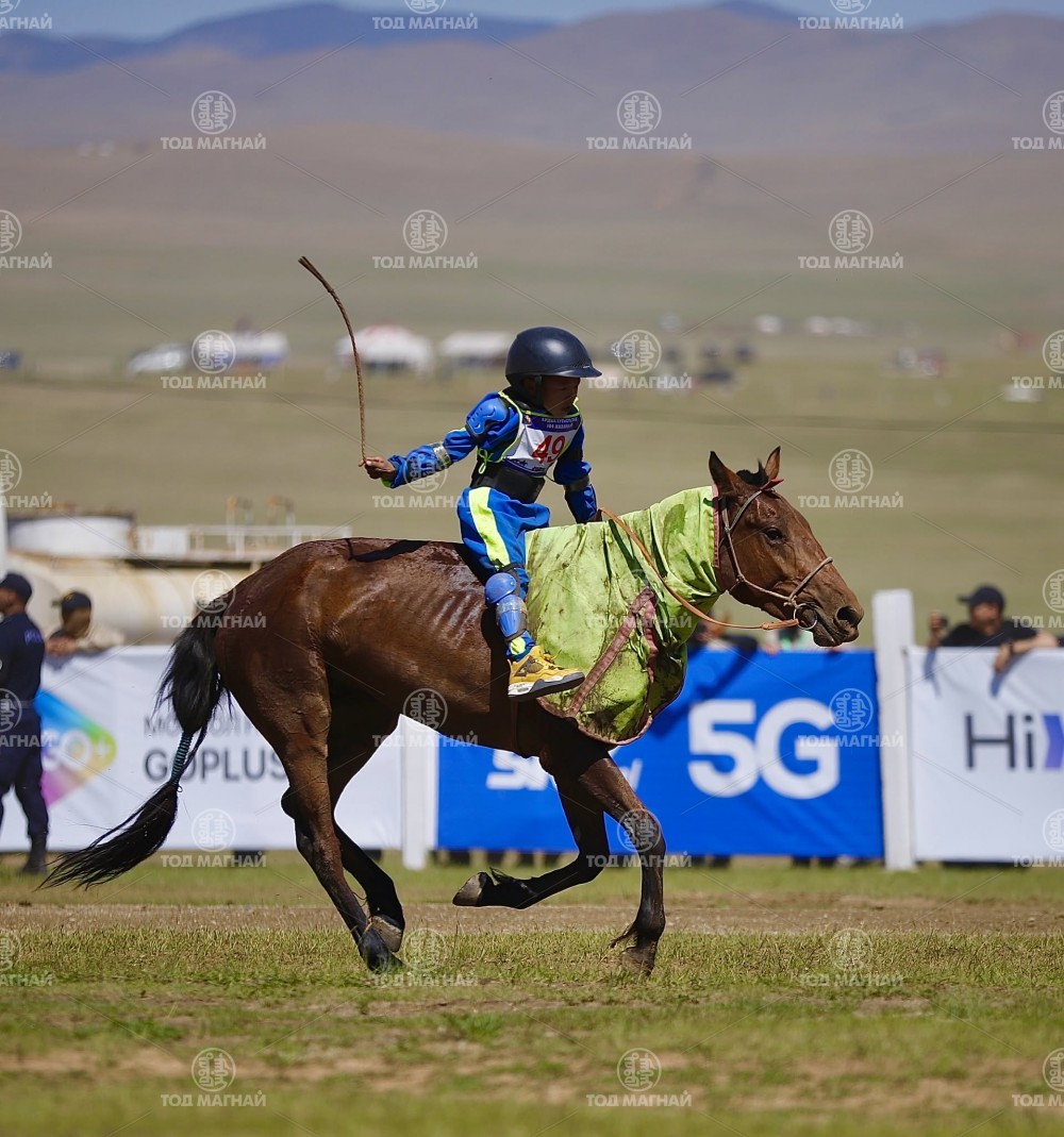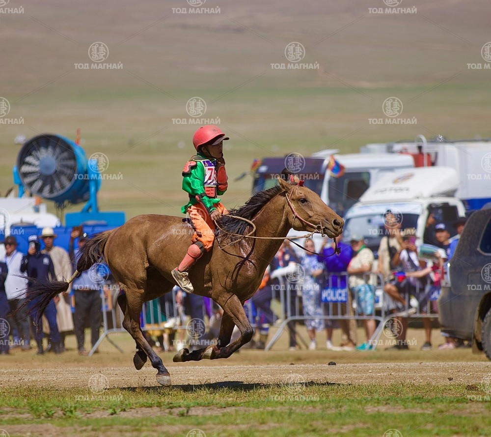 Наадамчин олны тэсэн ядан хүлээдэг хурдан соёолонгийн уралдааны түрүү магнайд Ховд аймгийн Мянгад сумын уяач МУМУ Загджавын Мэндсайханы хул үрээ орж, наадамчин олноо баясгав.