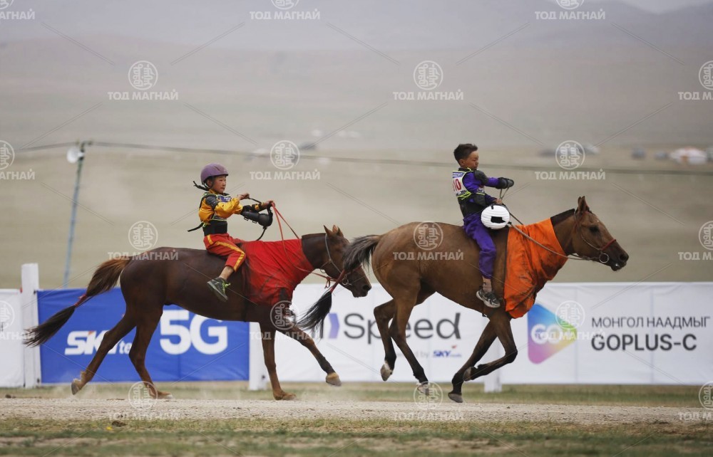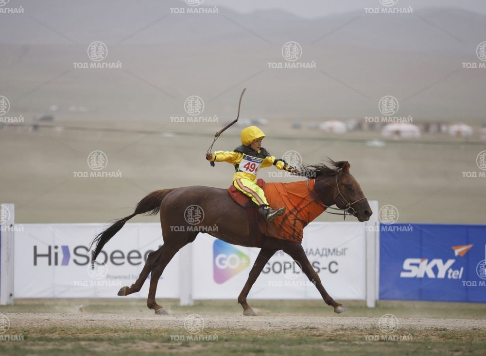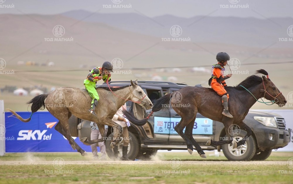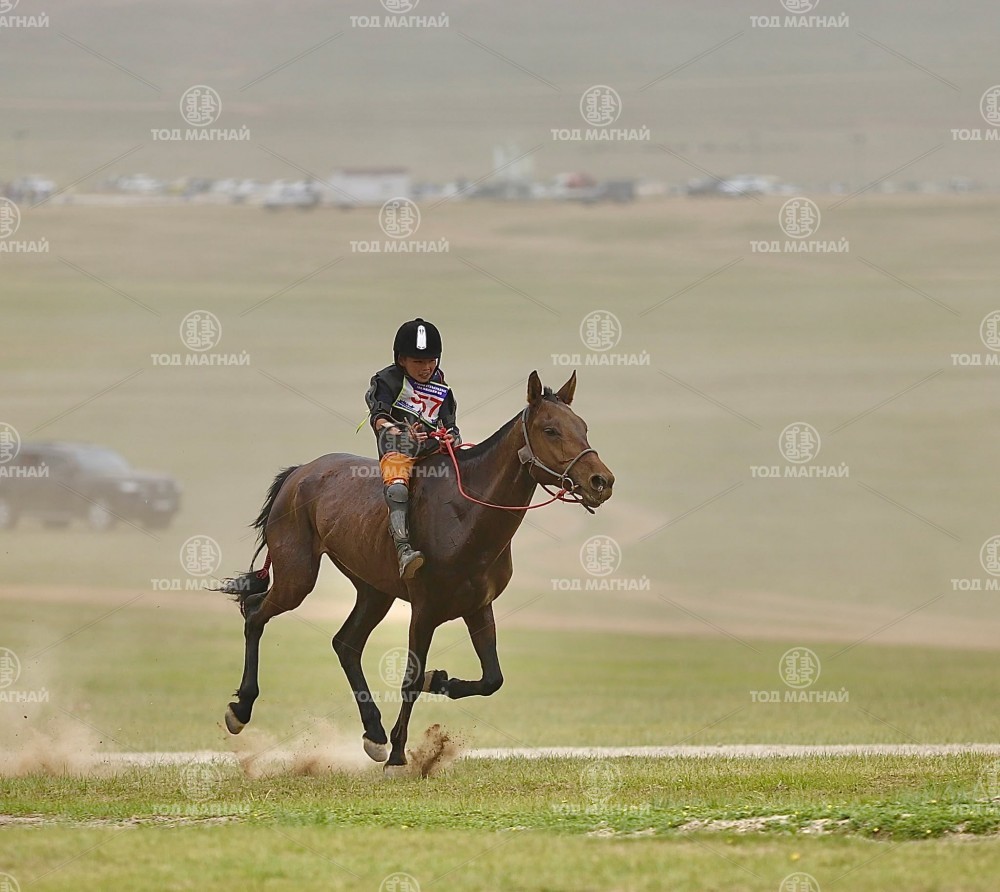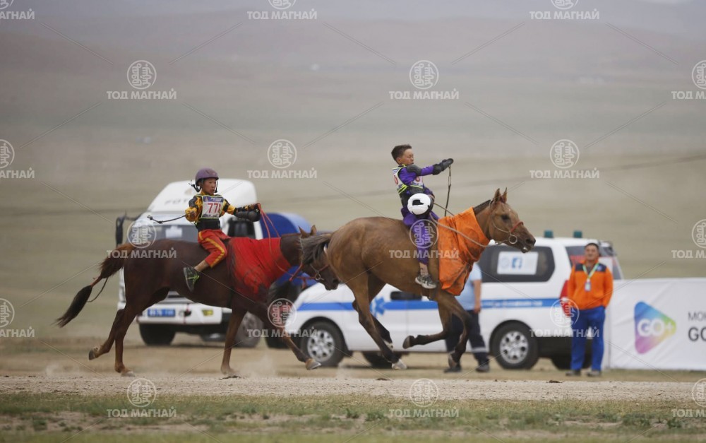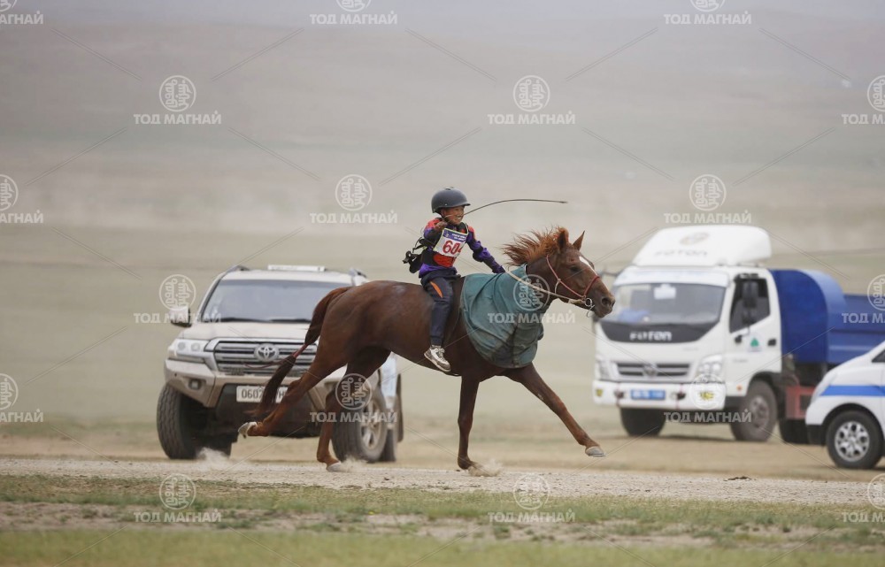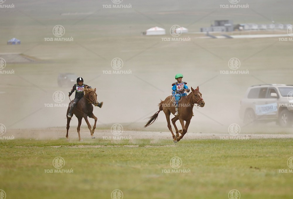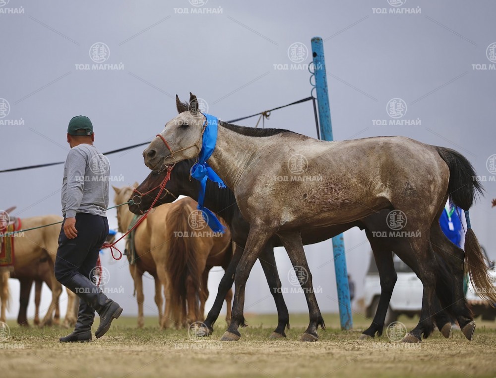 Түрүү магнайд Увс аймгийн Тэс сумын уяач Гавъяат барилгачин Мятавын Хүрэлбаатарын хүрэн халзан.Уралдаанч 8 настай Батын Ерөөлт, уяа сойлгыг Монгол улсын Манлай уяач М.Цэрэнжав.
