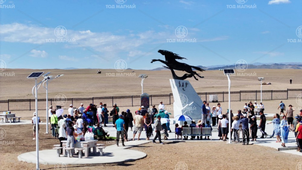 Уугуул нутгийнхаа нэрийг улс, бүсийн дэвжээнээ олонтаа цуурайтуулж, түмнээ цэнгүүлсэн тэрээр хүүгийн хамт Увс аймгийн 100 жилийн ойд зориулан морь барианы газарт "Цэнхэр тэнгэрийн хүлэг" хэмээх хөшөөт цогцолборыг байгуулж, өнөөдөр хүлээлгэн өгч байна.