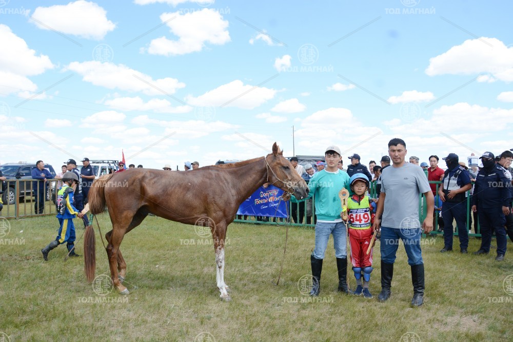 2. Архангай аймгийн Ихтамир сумын уяач Доржсүрэнгийн Аюурзанын хүрэн халзан. Уяа сойлгыг аймгийн Алдарт уяач Энх-Амгалангийн Болд-Эрдэнэ. Уралдаанч Архангай аймгийн Цэнхэр сумын 1 дүгээр сургуулийн сурагч Б.Эрдэнэжаргал.