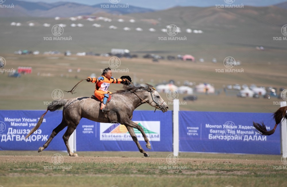 13. Дундговь аймгийн Сайнцагаан сумын уугуул Одонбаатарын Норовсамбуугийн зээрд халзан. Говийн бүсийн айрагдсан. Уяа сойлгыг Тод манлай уяач Т.Ихбаяр. Уралдаанч 11 настай Т.Баяртүвшин.