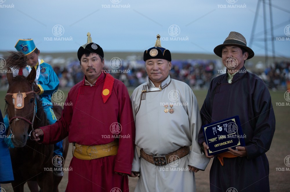 9. Завхан аймгийн Алдархаан сумын уугуул, "Шинэ эргэлт" компанийн захирал МУ-ын Алдарт уяач Чинбатын Болд-Эрдэний цавьдар. Тод манлай уяач С.Ганхуягийн унаган. Бүсийн уралдаанд нэг айрагдсан. Уяа сойлгыг МУ-ын Алдарт уяач Галсангийн Болдбаатар. Уралдаанч 10 настай Т.Отгонсүх.