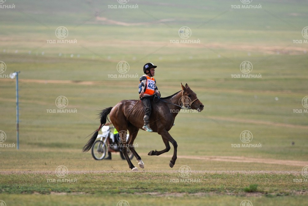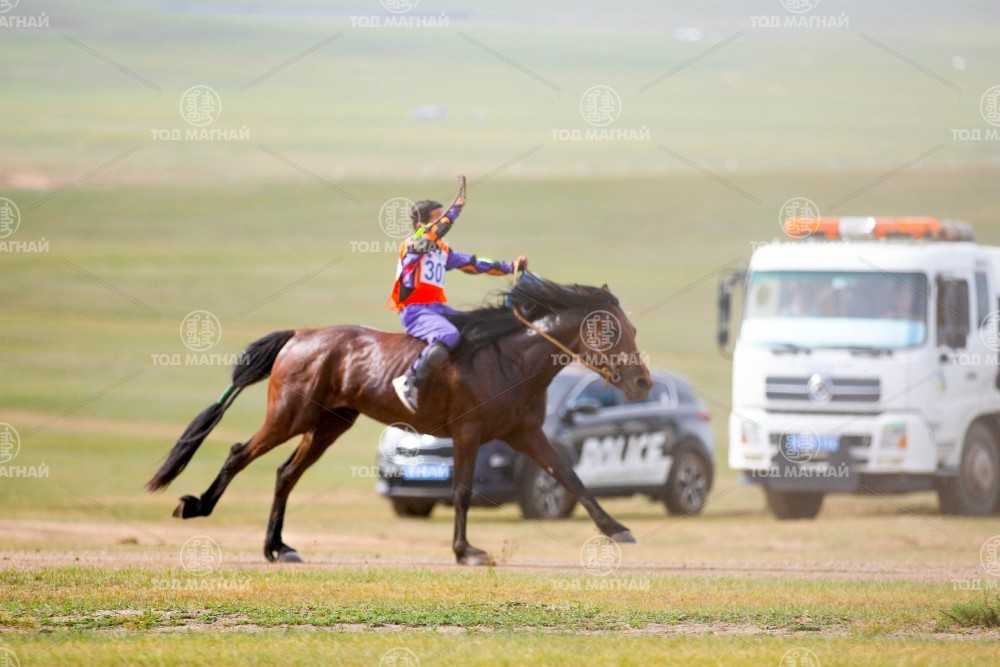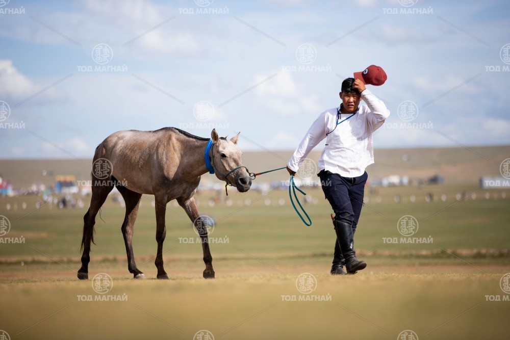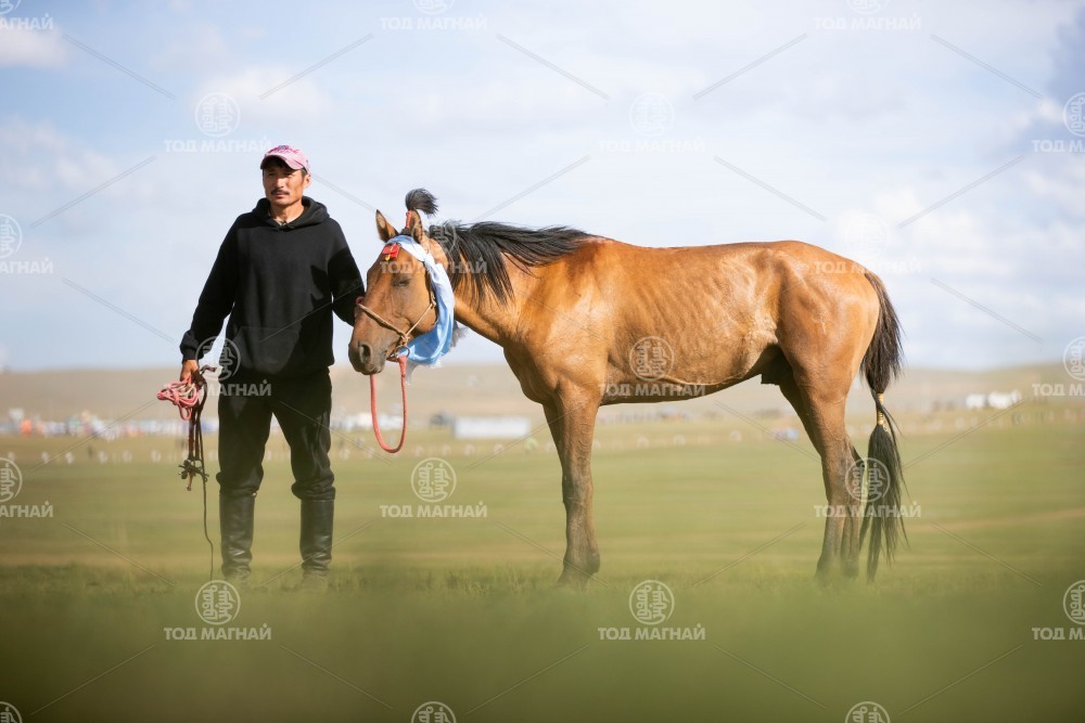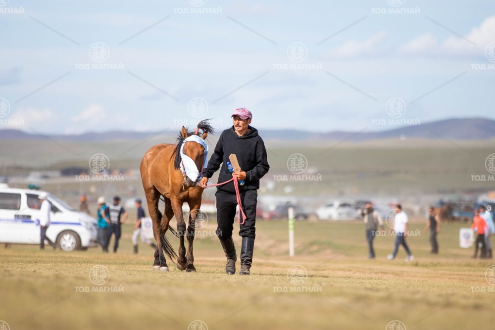 9. Өмнөговь аймгийн Булган сумын уугуул Тод манлай уяач Намдагийн Хүрлээгийн шарга халзан. Уяа сойлгыг Б.Ганбаяр. Уралдаанч 15 настай Батхүүгийн Бадар-Ууган.