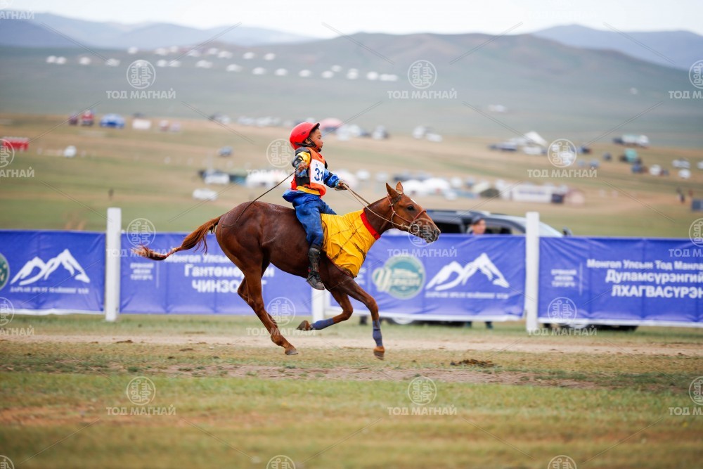 3.Өмнөговь аймгийн Булган сумын уугуул Тод манлай уяач Намдагийн Хүрлээгийн хүрэн халзан. Уяа сойлгыг Б.Ганбаяр. Уралдаанч 15 настай Батхүүгийн Бадар-Ууган.